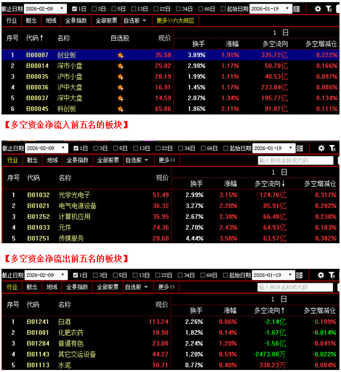 (2月9日午评,北京指南针科技发展股份有限公司提供)