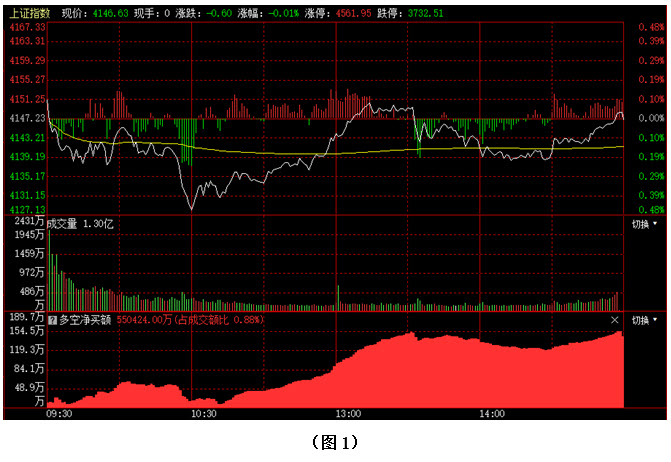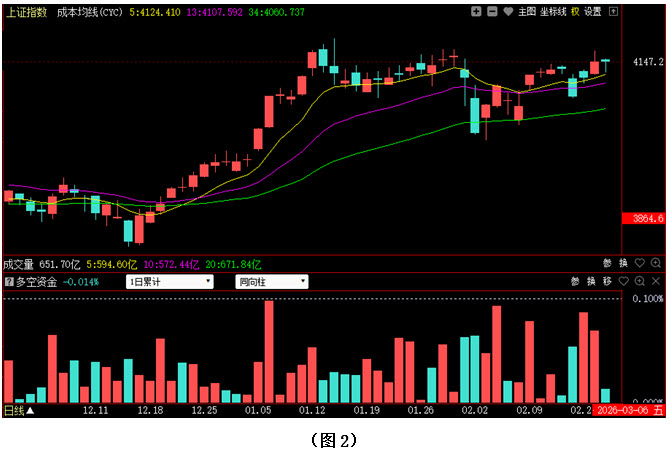 如图1所示,今日早间大盘小幅高开,但多方并未趁势上攻,指数逐步向下回探,盘中一度跌破4130点,好在市场并未持续杀跌,10点半后大盘开始逐渐回升,可惜在4150点上方压力依然较大,指数难以展开有力上攻,最终以以4146点收盘。从下方的多空资金来看,早间开盘后,多方就占据优势,盘中指数虽有回探动作,但资金始终保持流入状态,且进场的力度越来越强。可见今日尽管大盘没有进一步上攻,但资金仍在积极进场加仓,所以盘中出现的抛压就会被多方快速化解。在这种情况下,即便行情有所反复,投资者的做多热情自然也不会大幅下降,后市则有望在资金的推动下继续向上攀升。建议大家关注近期有资金连续大幅加仓的板块,并在其中优选个股,逢低逐步吸纳。