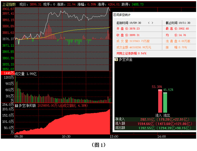 今日早间大盘先是围绕着3875点窄幅震荡整理,10点10分左右市场突破快速上攻,直逼3900点整数关口,虽然未能形成有效突破,但也没有出现大幅回落,至中午收盘时,指数位于3899点。从日K线图上看,今天上午大盘依托着5日成本均线支撑向上发起冲击,指数连续突破34日与13日两条重要成本均线,市场短期走势进一步好转,但3900点整数关口仍未突破,所以多方后续力量还需及时跟上。从下方的多空资金来看,早间开盘后,多方就占据优势,随后资金持续流入。截止到中午收盘时,沪市当中多方力量高于空方超过6个百分点,资金流入200多亿。从六大战区的情况分别来看,截止到今日中午收盘时,除科创板战区有少量资金流出之外,其余五个战区均为资金流入状态,其中不仅创业板战区资金流入达到77亿,沪中大盘战区与深中大盘战区的资金流入额更是双双超过170亿。可见今日上午多方力量在整体上远远强于空方,促使投资者的做多热情不断提升。在这种情况下,行情就很难出现连续大幅杀跌,接下来大盘则有望在资金的推动下继续向上回升。建议大家关注前期调整较为充分且近期有资金连续回流的个股,逢低吸纳。