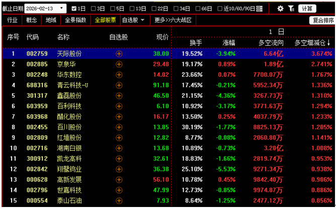 【今日多空资金增仓前200名中涨幅最小的15只个股】