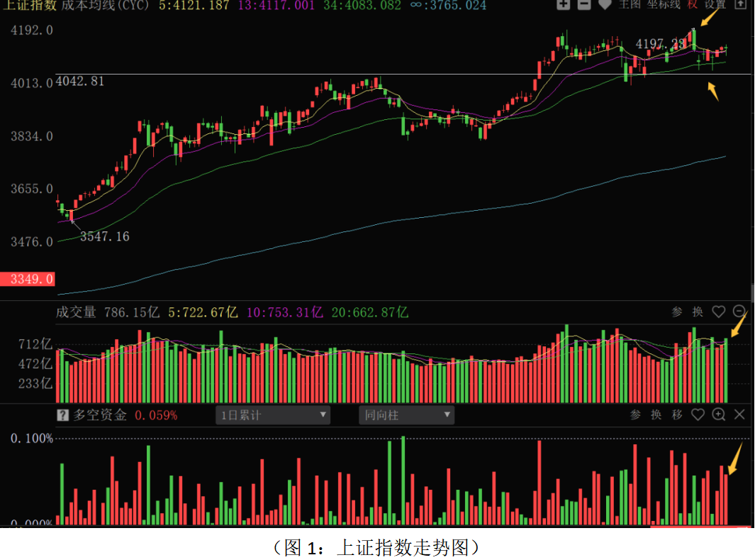 从上证指数走势来看:股指围绕5日、13日成本均线震荡,成交量有所放大,说明当前位置资金有一定的分歧。不过,多空资金依然净流入106.78亿元,说明震荡中资金有逢低进场动作。资金进场的方向主要来自油气、有色资源、高股息等蓝筹方向,相关板块的资金流入主要是中东局势不稳、油价上涨的驱动,短期会反复活跃,但整体向上拓展空间的动力有待观察,密切关注中东地缘事态的发展,不宜盲目追涨。目前股指经过两波中东局势冲击之后,在34日成本均线上保持较强的韧性,该成本均线位置是去年11月平台位置,技术和心理支撑较强,也是近期阶段的低点位置,短期不会轻易跌破。同时,近期高点位置存在一定的的心理和技术压力,近期股指继续维持4050—4200点区间震荡的可能性较大。从0Z指数走势来看,股指震荡下跌,近期早评已经有所提醒,股指连续强势反弹之后,近期高点和筹码密集峰位置有较大的压力,加上避险情绪的抬升,短期部分超跌修复的成长股有一定的抛压。全市场超3800只股票下跌,多空资金净流入21.62亿元,对比上海市场资金的流向,可以看出中小市值品种短期资金有一定的离场动作。活跃市值连续冲高回落,较前两日跌幅加大,短期跌破5日、13日成本均线,并且连续3个交易日K线上留有上影线,一方面说明资金追涨意愿不强,另一方面说明市场短期有一定的抛压。从波段结构牛指标组来看,熊股线总体处于下降状态,马股线和牛股线稳步抬升。不过,牛股和熊股数量抬升力度减弱,部分超跌反弹品种或有震荡的风险。目前操作上应继续采取稳健策略应对,总仓位控制在六成左右,底仓持股为主;浮动仓位不宜激进追涨,短线反弹品种应根据关键位置资金流向和短线决策信号做好仓位调整;仓位控制较好的投资者,在行情震荡回调阶段低吸为主。