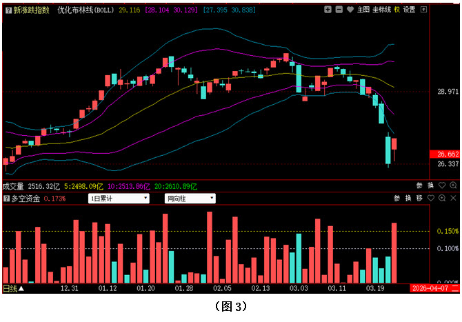 今日两市上涨个股共4866只,其中涨幅超过3%的个股2915只,涨幅在9.9%以上的个股130只;下跌个股共299只,其中跌幅超过3%的个股49只,跌幅在9.9%以上的个股1只。图3所示为指南针特有的0Z指数K线图,从图中可以看到,今日0Z指数同样高开,并向上拉升,最终不仅以阳线报收,且昨日的阴线实体几乎已被完全吞没。可见今日场内多数个股都出现了明显反弹,但目前0Z指数仍全天运行在优化布林下轨下方,市场整体走势依然较弱。从下方的多空资金来看,今天多空资金为流入状态,且资金流入量明显大于昨日资金流出量,说明今日资金回流十分积极,但若要扭转市场走势,多方的后续力量就还需不断跟上,否则一旦反弹遇阻,空方再度施压,行情很可能还会出现反复。建议大家控制好仓位,同时认真甄别手中个股,对于前期涨幅过大且反弹时资金回流较小的品种,可逢高逐步减仓;而对于前期涨幅相对较小且反弹时资金快速加仓的品种,则可在低位适当补仓,摊低成本。