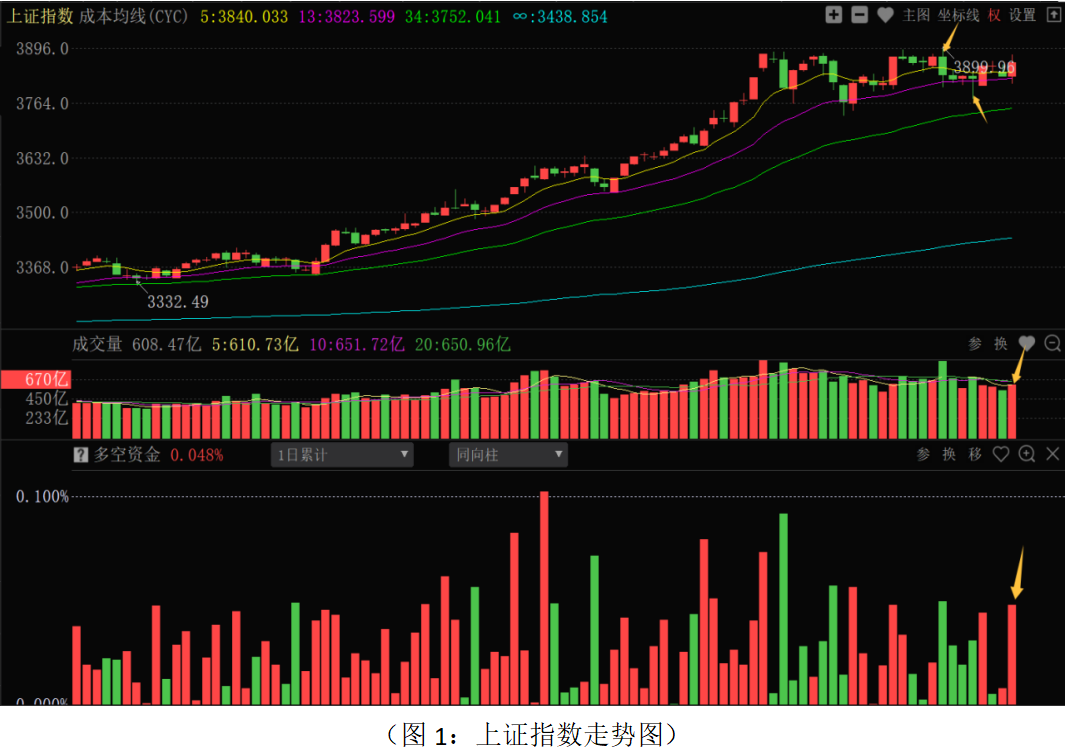 从上证指数走势来看:昨日股指回探3800点整数关口之后强势上涨,成交量有所放大,多空资金净流入327.53亿元,站上5日成本均线并创出近期反弹新高,节前资金假期情结和观望情绪得到明显地缓解。市场的强势反弹,一方面由于券商板块的强势大涨,作为牛市行情“旗手”短线的大涨,对资金做多积极性有明显的提振。另一方面中央政治局会议召开,决定10月20日至23日在北京召开“四中全会”,并且听取了《中共中央关于制定国民经济和社会发展第十五个五年规划的建议》稿在党内外一定范围征求意见的情况报告。虽然对四季度经济没有提出新的定调,但“十五五”规划的相关消息再度引发市场对中期政策的预期,提振市场信心,资金进场较为积极。同时,发改委新闻发言人表示,下一步,国家发展改革委将持续发力,适时加力实施宏观政策。在上半年经济增速超预期,三季度经济有所下滑的背景下,中短期政策对经济的稳定发展仍有持续的托举力度,全年完成5%的增速目标大概率能够实现。叠加“十五五”规划的政策预期,市场仍有中期向上的经济基本面和政策面支持。今日是国庆中秋假期前最后一个交易日,经过近几日的小幅震荡之后,节前假期观望和避险情绪会明显地缓解。短期走势上,5日、13日成本均线有较强的支撑,经过近期连续的震荡和多空争夺之后,3800点一带支撑得到进一步的巩固和强化。热点结构上,金融、有色、钢铁、地产、白酒等传统板块强势上涨,同时,科创50、创业板等指数也探底回升同步上涨。板块普涨走势一定程度上说明科技成长板块短期震荡告一段落,另一方面市场对后续稳经济政策仍有预期,如地产、消费等。在资金观望情绪缓解和政策预期下,指数有望继续修复或挑战3900点高点。不过,由于长假的原因,总体追涨积极性和持续性有待观察,部分低位反弹的板块和个股反弹至中期压力位置或有冲高震荡的走势,大盘指数围绕3900点震荡的可能性较大。从0Z指数走势来看:该指数再度回探无穷成本均线后强势反弹,多空资金净流入884.83亿元,全市场上涨个股家数和下跌个股家数比超2:1,个股活跃度有所提升。由于市场成交量萎缩,叠加近期高点和筹码密集峰的压力,短期普涨之后可能会面临分化。从短期结构牛(大盘)指标来看,马股比例维持在60%以下,持续下降后小幅拐头向上;牛股比例18%左右总体下降态势,没有明显抬升;熊股连续上升之后小幅下降。总体看,牛股数量提升不明显,主要原因一方面部分强势股仍处于风险释放走势中,另一方面市场机会主要在超跌或连续调整个股的反弹上。节后三季报业绩的公布,仍需警惕高估值题材股的补跌风险。当前应继续采取稳健的操作策略,总仓位控制在6-7成,底仓持股为主,警惕强势股补跌风险,短线或波段浮动仓位应紧盯资金流向和决策信号做好止盈操作,剩余资金“多看少动”,等趋势明朗后再顺势操作。