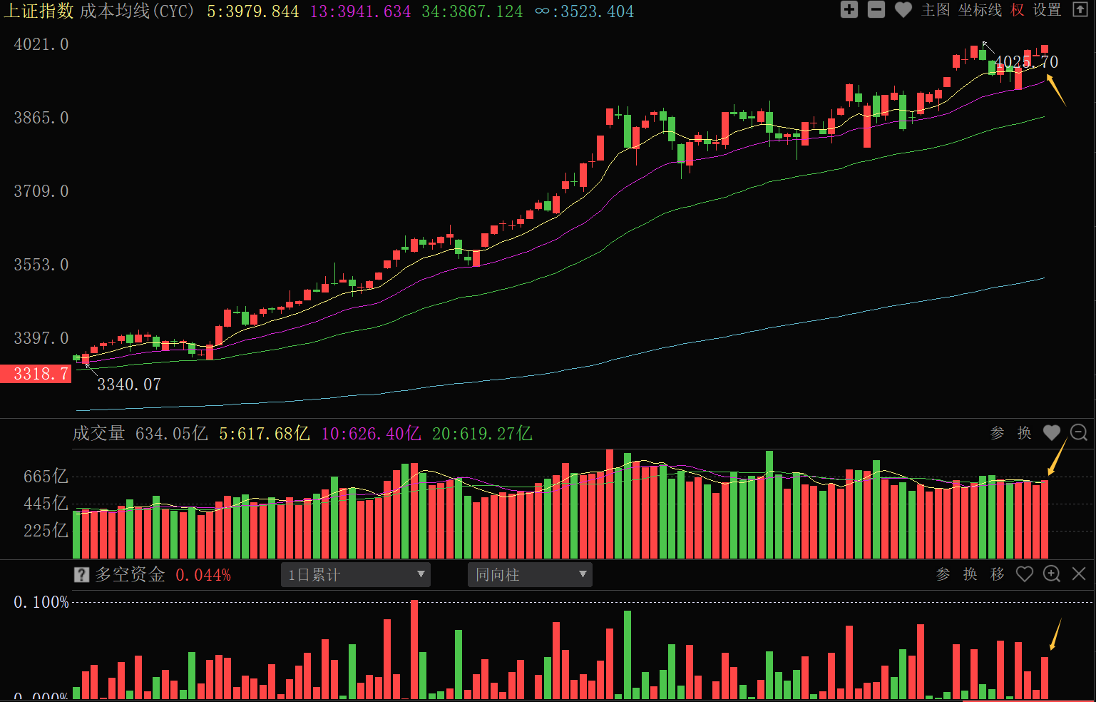 从上证指数走势来看:股指震荡上行再度站上4000点大关,成交量小幅放大,多空资金净流入146.94亿元,走势总体呈现强势的状态。板块结构上,消费类板块和券商板块接棒科技和周期板块走强,对市场走势起到积极稳定和促进作用。在中美经贸会谈达成积极成果后,对于市场的走向资金主要聚焦国内经济和政策方向上。经济层面,三季度GDP增速5.2%,全年完成5%的GDP目标是大概率事件。刚刚公布的10月CPI、PPI同比和环比均有改善,这是市场震荡向上运行的重要基本面支持。虽然近期市场进入政策观察和真空期,但中期稳经济政策的确定性和稳定性较高,市场总体维持“进三退二”螺旋式震荡上行的走势。技术上,中、短期成本均线处于多头状态,市场走势总体强势,5日、13日短期成本均线对指数形成较强支撑。前期早评多次强调,4000点整数关口更多的是心理压力,投资者不要在意4000点的得失。市场的重要压力位置是在6124点和5178点高点的连线上,点位大概在4100-4200点一带,当前股指距离该位置较近,再度冲高后临近该区域资金可能会表现出一定的谨慎和观望态度。从优化布林线指标来看:股指回探中轨之后再度上行,目前站上中上轨位置,在资金持续进场和基本面数据向好的背景下,股指仍有上行的动力,重要压力位在上轨位置(4055点一带)。由于当前政策真空期,叠加成交量的总体萎缩,市场难以形成普涨和快涨的走势,如果股指运行至上轨位置出现技术“超买”走势,一旦多空资金明显流出或净流入较少,要警惕新高后股指再度震荡的可能,短线操作上紧盯关键位置资金流向做好浮动仓位的动态调整。从0Z指数走势来看:股指在中、短期成本均线上方震荡上行,盘中继续创出阶段新高,全市场上涨个股家数明显多于下跌个股家数,单日多空资金净流入362.73亿元,多空资金继上周五流入量明显减少之后再度净流入增加。股指经过长时间震荡之后已经站上筹码密集峰,并完成对8月底以来下降趋势线的突破,市场有进一步向上突破的基础。但成交量总体萎缩,尚不支持板块和个股的普涨,机会主要在科技成长、周期类板块、消费类板块之间轮动,板块结构性轮动走势对资金做多积极性和赚钱效应的延续有一定的正面促进作用,市场有望维持稳步上行的走势。从短期结构牛指标组来看:马股比例从71%左右逐步下降至62%左右,牛股比例明显抬升至24%左右,熊股比例低位徘徊回升不明显,说明部分调整充分或横盘个股二次启动机会在增加,市场赚钱效应稳步回升。操作上应采取稳健策略应对,总仓位控制在7成左右,底仓持股为主,浮动仓位可适当捕捉结构性机会,紧盯大盘关键技术压力的资金流向做好低吸或高抛的操作。