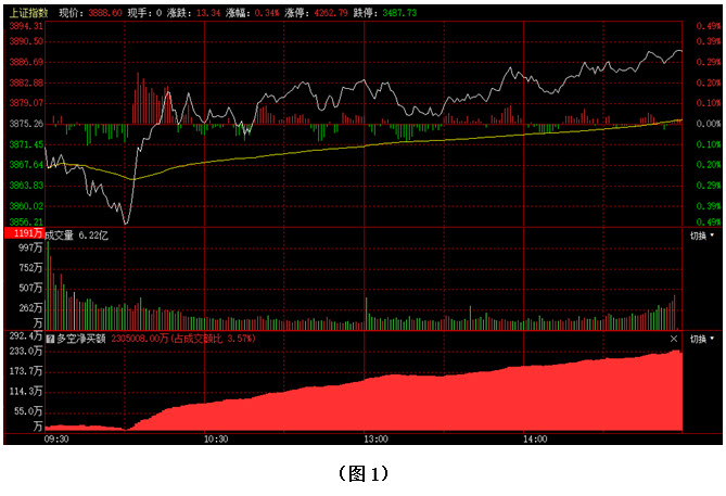 如图1所示,今日早间大盘小幅低开,并出现一波下探,盘中一度跌至3860点下方,好在指数并未持续杀跌,而是在10点后快速回升至昨日收盘点位上方,不过3880点上方的压力依然存在,市场只得窄幅震荡整理,直到下午两点后,大盘才逐步站稳在3880点上方,并进一步向上攀升,最终以3888点收盘。从下方的多空资金来看,早间开盘后,多方就占据优势,10点后随着市场快速回升,资金更是持续流入。可见今日多方力量仍明显强于空方,资金继续以流入为主,说明目前投资者的做多热情依然较高。在这种情况下,只要空方无法连续施压,行情就难以出现持续下滑。所以对于仓位较轻的投资者来说,市场的短期回探反而会带来更多逢低布局的机会。近期已有人使用软件中的“指数叠加”功能成功捕捉到元件板块中的贝隆精密、长盈精密、春秋电子,以及光学光电子板块中的勤上股份、光库科技、德科立等轮动龙头个股。手机版如何使用“指数叠加”功能抓刚刚启动走强的轮动股?详细步骤点击立即学习。