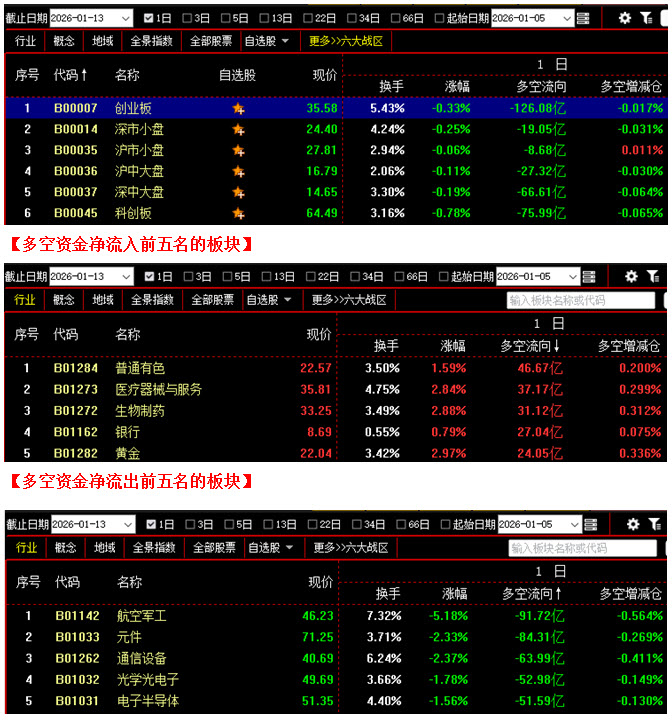 (1月13日午评,北京指南针科技发展股份有限公司提供)